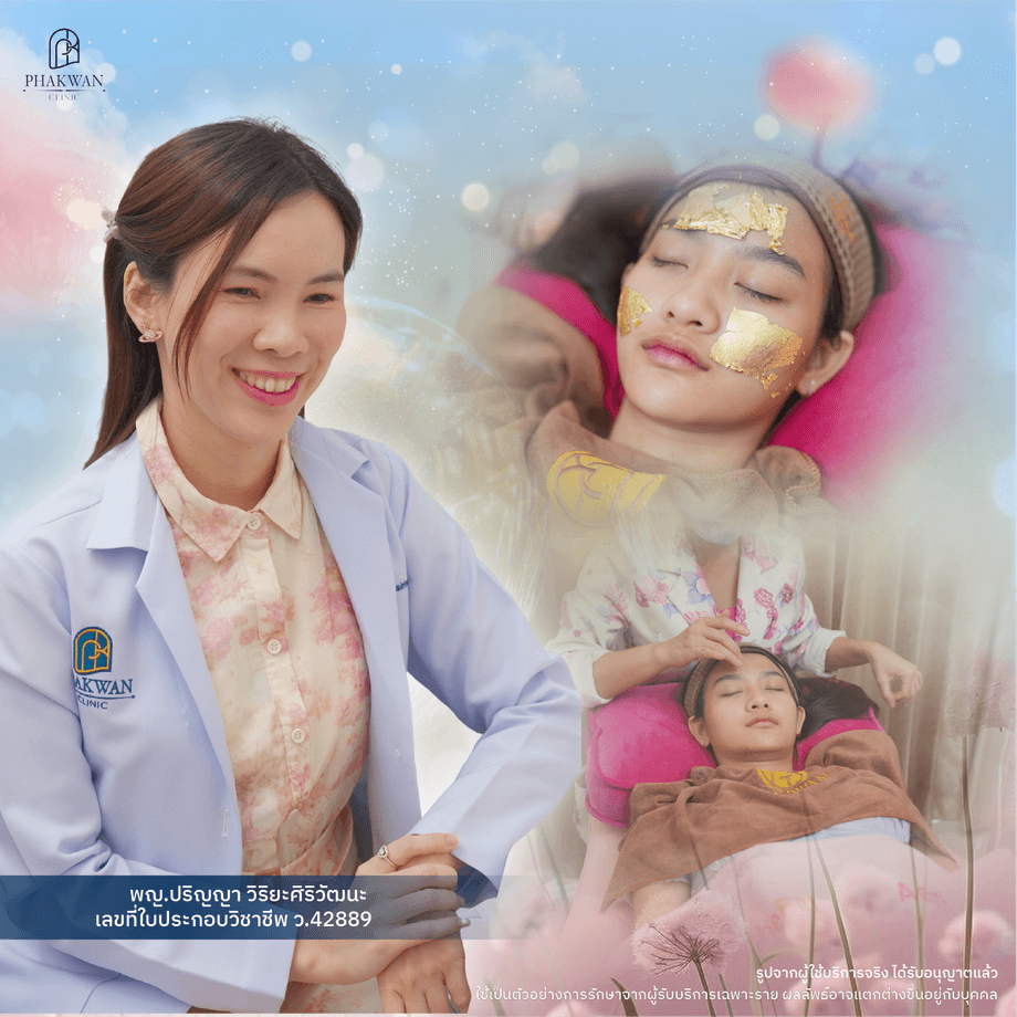 "การทำ 24K Gold Treatment เหมาะสำหรับทุกสภาพผิว โดยเฉพาะคนที่เจอมลภาวะหรือมีผิวหมองคล้ำจากความเครียด ทองคำจะช่วยฟื้นฟูผิวได้ดี และที่พาขวัญคลินิก หาดใหญ่ เราเลือกใช้ผลิตภัณฑ์ที่มีมาตรฐานสูง รวมถึงใช้เทคนิคที่ช่วยให้ได้ผลลัพธ์ดีที่สุดค่ะ"