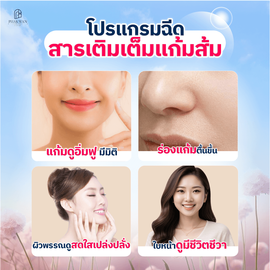 อย่าปล่อยให้ใครเรียกคุณว่า "ป้า" อีกต่อไป! รีบจองคิววันนี้ เพื่อแก้ปัญหาแก้มตอบ กลับมาสวย และแลดูเด็กลงด้วย โปรแกรมฉีดสารเติมเต็มแก้มส้ม ที่ พาขวัญคลินิก หาดใหญ่กันนะคะ ประทับใจแน่นอน